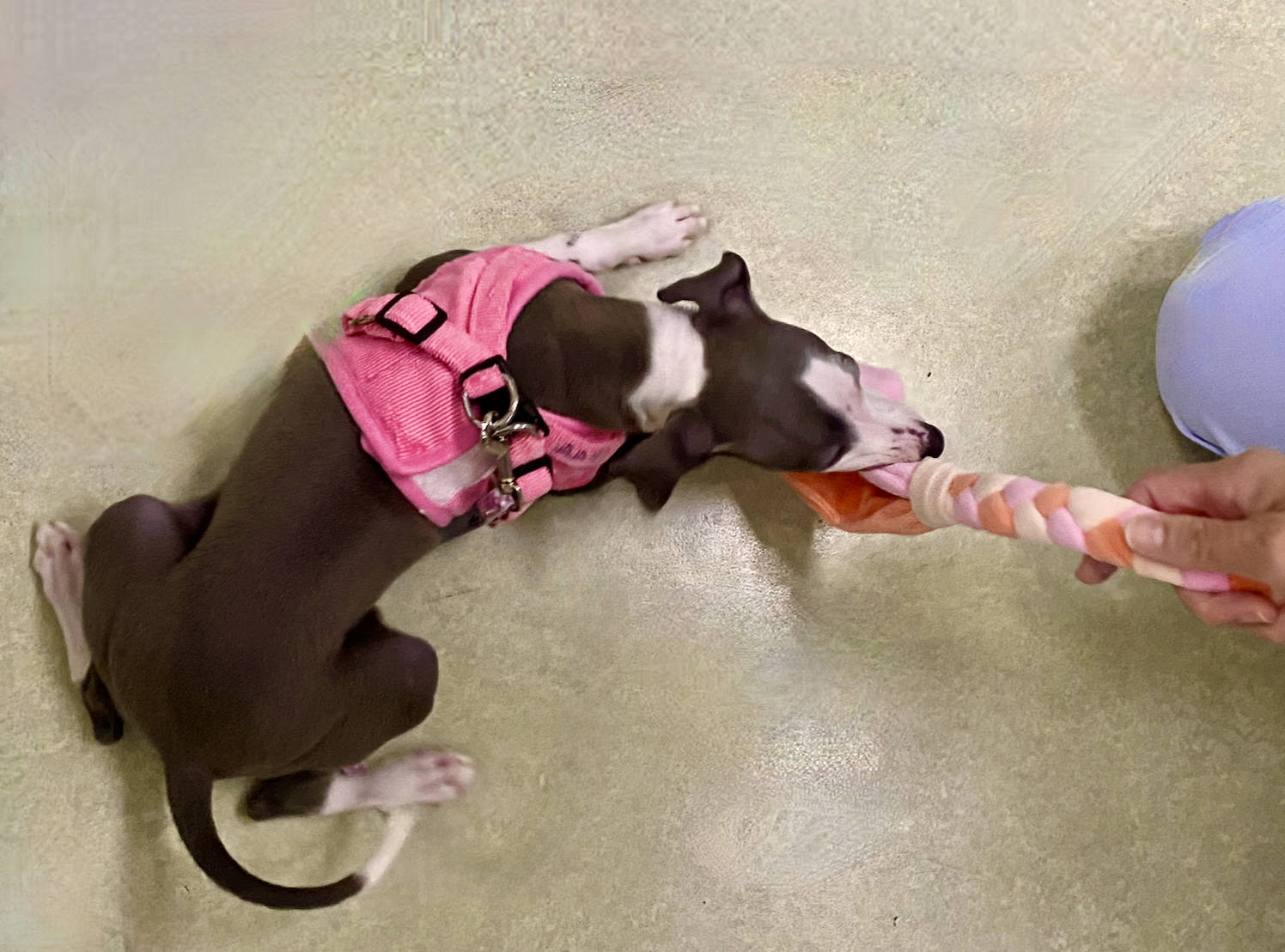 おもちゃでの遊びは人の手足で遊ぶ事を避ける意味でも重要です。また、遊びの始まりと終わりは家族が主導して始め、終えて、おもちゃ類を与えたままにしないことも重要です。おもちゃは人が指示を出して従ったご褒美に与える形が良いでしょう。重ねてお伝えしますが、犬や猫の方からの要求で遊びは始めず、人から始め、人が終えましょう。