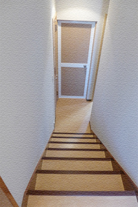 清掃性を高く維持するには、カーペット素材よりも塩ビシートのクッション材が望ましいですが、その場合は階段幅全体に敷き詰めるものが一般的です。その際、階段の角となる段鼻と呼ばれる部分と、踏み面の色を工夫してみることをお勧めします。