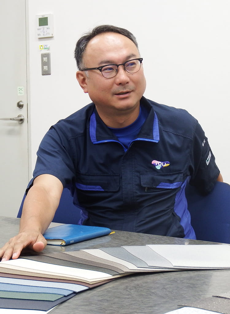 といっても、当時「あえて単層シートをつくらなくても良いのではないか」と否定的な声があったのも事実です。東リはすでに複合ビニル床シートで大きな市場を持っています。製品開発の決め手になったのは、永嶋社長の「グローバル戦略のために、東リならではの高品質な単層ビニル床シートが必要だ」というひと押しでした。メイド・イン・ジャパンの品質が国内外で高く評価される昨今、東リの技術力を詰め込んだ製品が完成すれば、ニーズを持つお客様は必ず注目してくれるだろうと。日本での市場が実際にどれほど開拓できるかは未知数でしたが、こうしてトップダウンによるチャレンジが決定したのです。