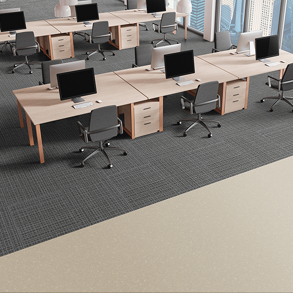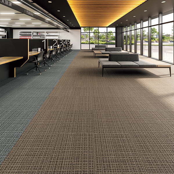 空港、デパート、店舗を始め、オフィス、学校、病院、会館等ロビー、エントランスホールや廊下など、歩行量が多く、また台車などの重量物が頻繁に往来するような部位に適しています。