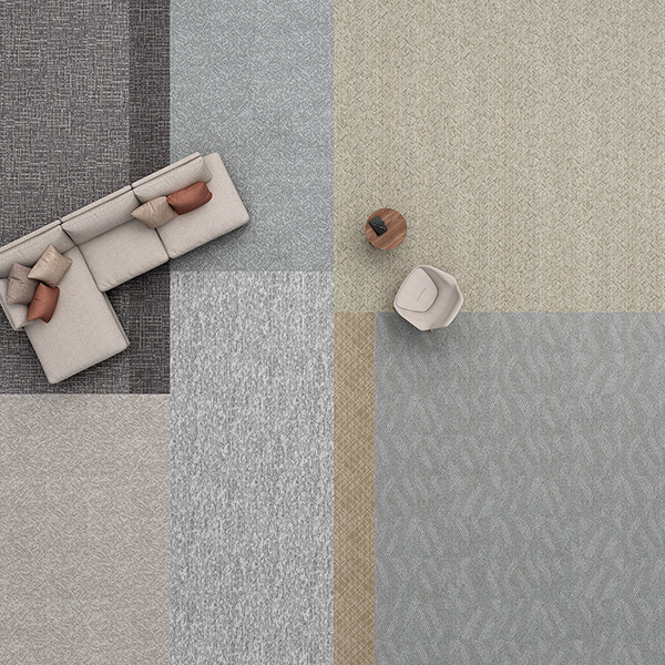 光沢のある石を思わせる無方向柄。立体的なループと方向性のない柄が自然な広がりを演出。