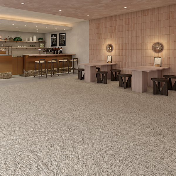 空港、デパート、店舗を始め、オフィス、学校、病院、会館等ロビー、エントランスホールや廊下など、歩行量が多く、また台車などの重量物が頻繁に往来するような部位に適しています。