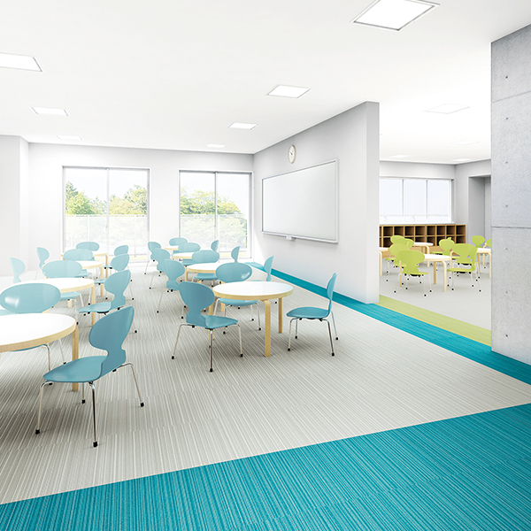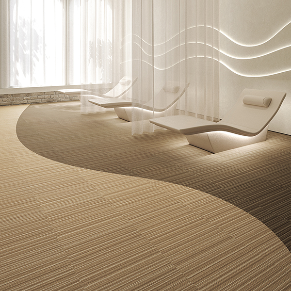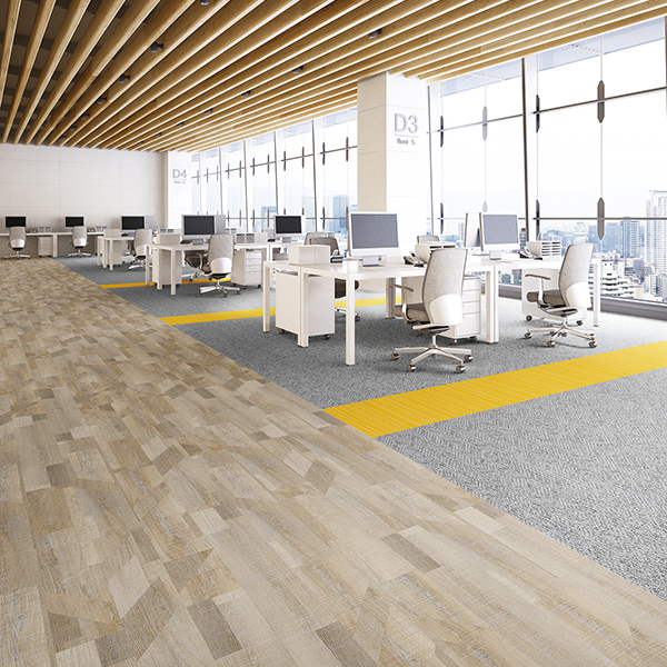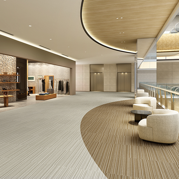 空港、デパート、店舗を始め、オフィス、学校、病院、会館等ロビー、エントランスホールや廊下など、歩行量が多く、また台車などの重量物が頻繁に往来するような部位に適しています。