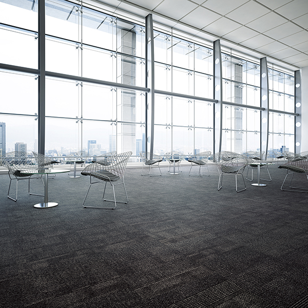 空港、デパート、店舗を始め、オフィス、学校、病院、会館等ロビー、エントランスホールや廊下など、歩行量が多く、また台車などの重量物が頻繁に往来するような部位に適しています。