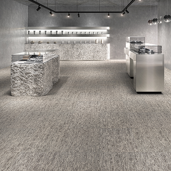 滝が凍った情景をかすれたラインと陰影ある凹凸感で表現。 空間に清涼感と静謐な美しさをもたらします。