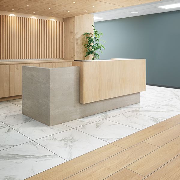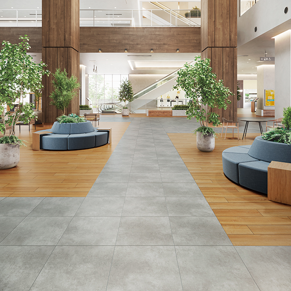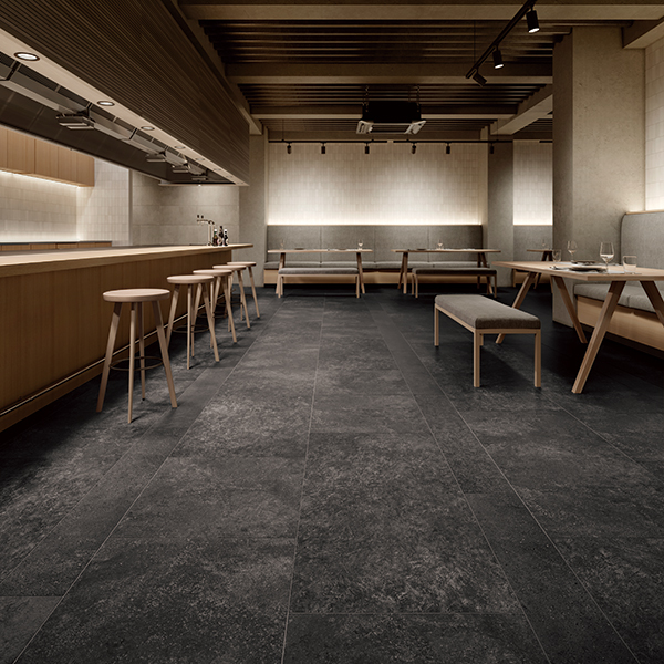 下地不陸隠蔽性に優れ、美しい仕上りを実現する新しい床材。 メンテナンス性や耐久性を有し、一般的なセラミックタイルと比べて施工性に優れます。グッドデザイン賞受賞。