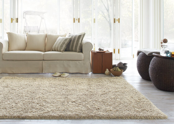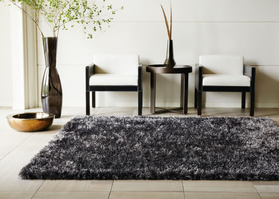 繊細で光沢感の強いポリエステル糸を使用したシャギーラグ。