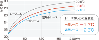赤外線を通しにくいポリエステル繊維を使用していますが、レースカーテンの採光性と風合いはそのままです。
