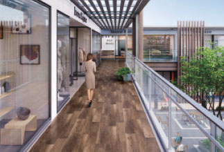 木の持つ自然な色の濃淡を表現した木目ヘリンボーン柄。スタイリッシュな印象ながらも、木のあたたかみを感じる空間に。マンションのバルコニーに新たな価値を提供します。